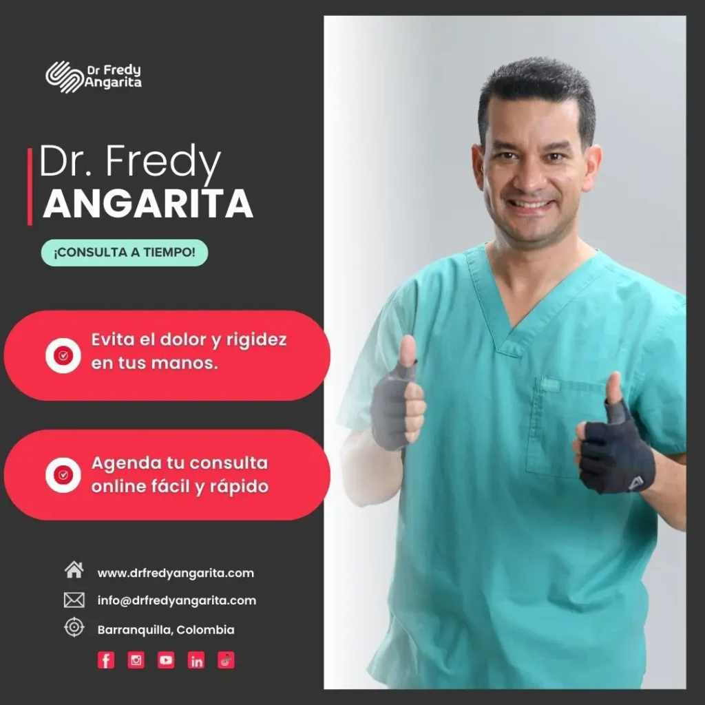 El Dr. Fredy Angarita es ortopedista y traumatólogo especializado en cirugía de mano y miembro superior, con más de una década de experiencia. Ha ejercido como cirujano en la Clínica Portoazul de Barranquilla desde 2014 y actualmente es presidente del Capítulo de Mano de la Sociedad Colombiana de Ortopedia y Traumatología (SCCOT). Su enfoque combina precisión quirúrgica, innovación y atención personalizada, ayudando a pacientes a recuperar movilidad y calidad de vida
